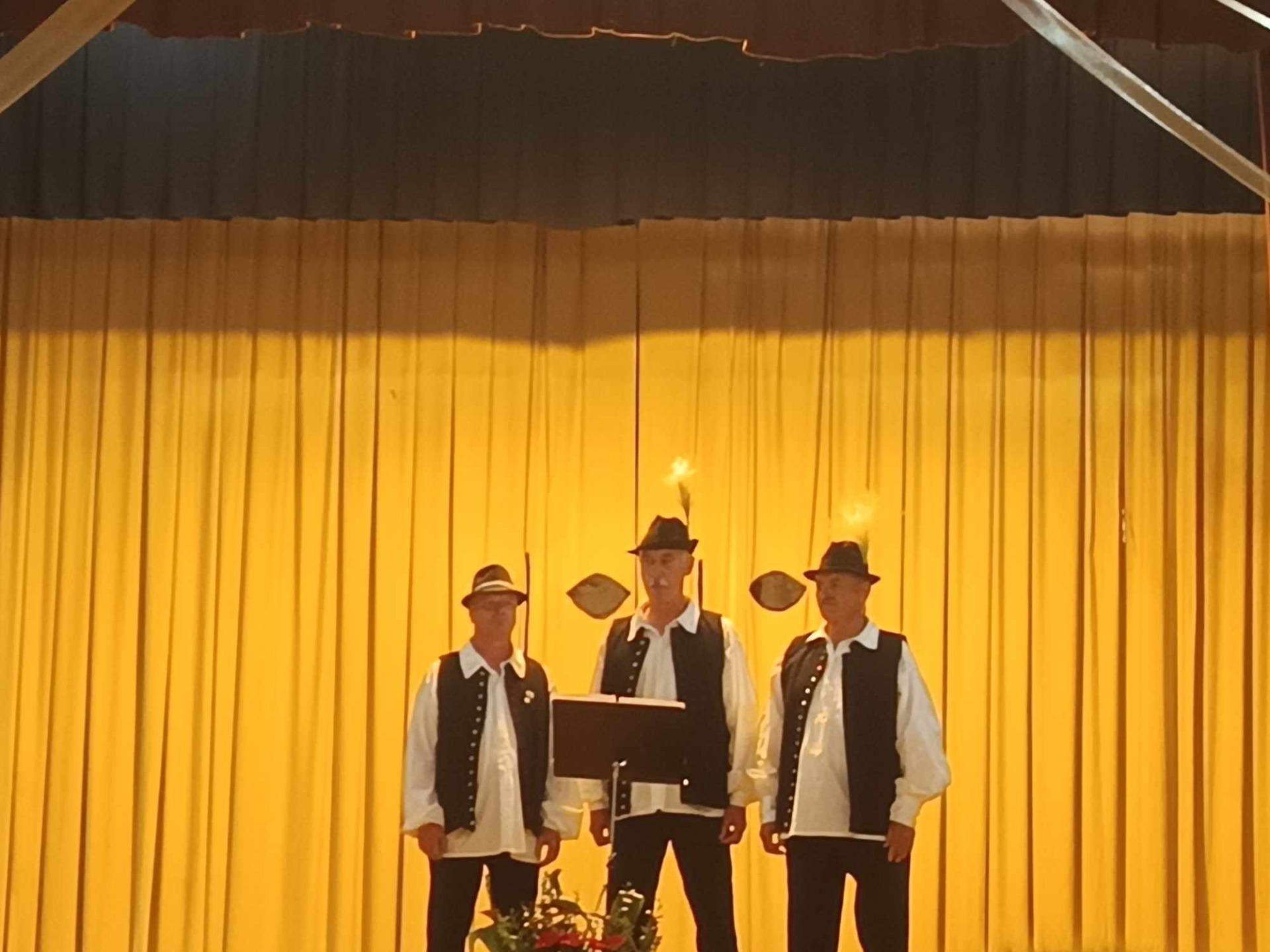 A hangulatot tovább fokozta, amikor a helyi kórusokkal és a közönséggel együtt énekeltek. A kórusok felváltva kezdtek bele egy-egy nótába, amihez aztán a jelenlévők csatlakoztak.